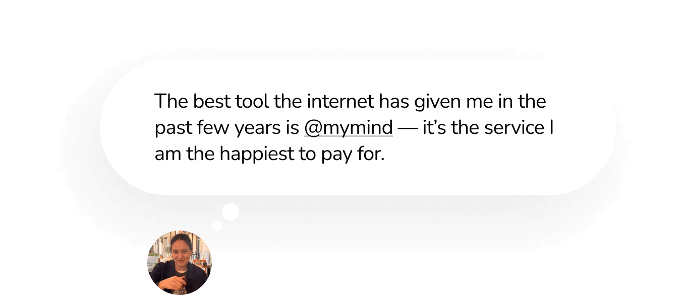 Highlight a passage or quote you want to remember from an article or newsletter. mymind will file it away for you, so you can keep reading.