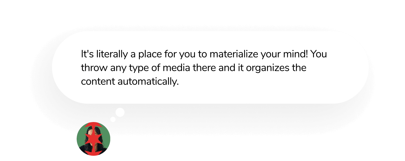 Search any keyword you remember from a meme, handwritten notes or photo containing text, and mymind can read the image and find it for you.